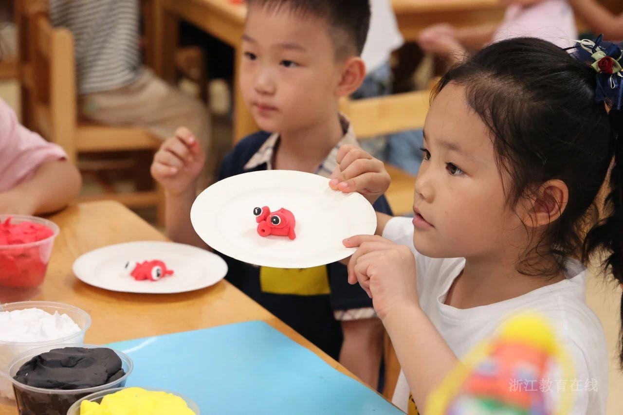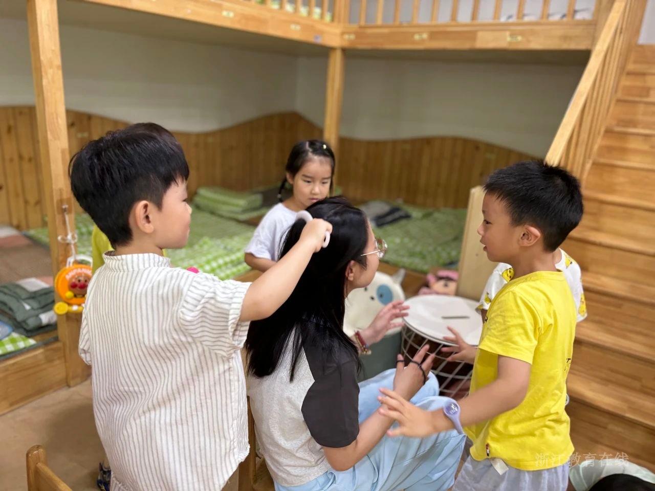 杭州市锦绣幼儿园暑托点,老师们准备了丰富多样的活动材料,孩子们在游戏中与老师、同伴拉近距离。幼儿园还全面开放了专项活动室和“小农场”“乐高屋”“光影角”等特色活动空间。