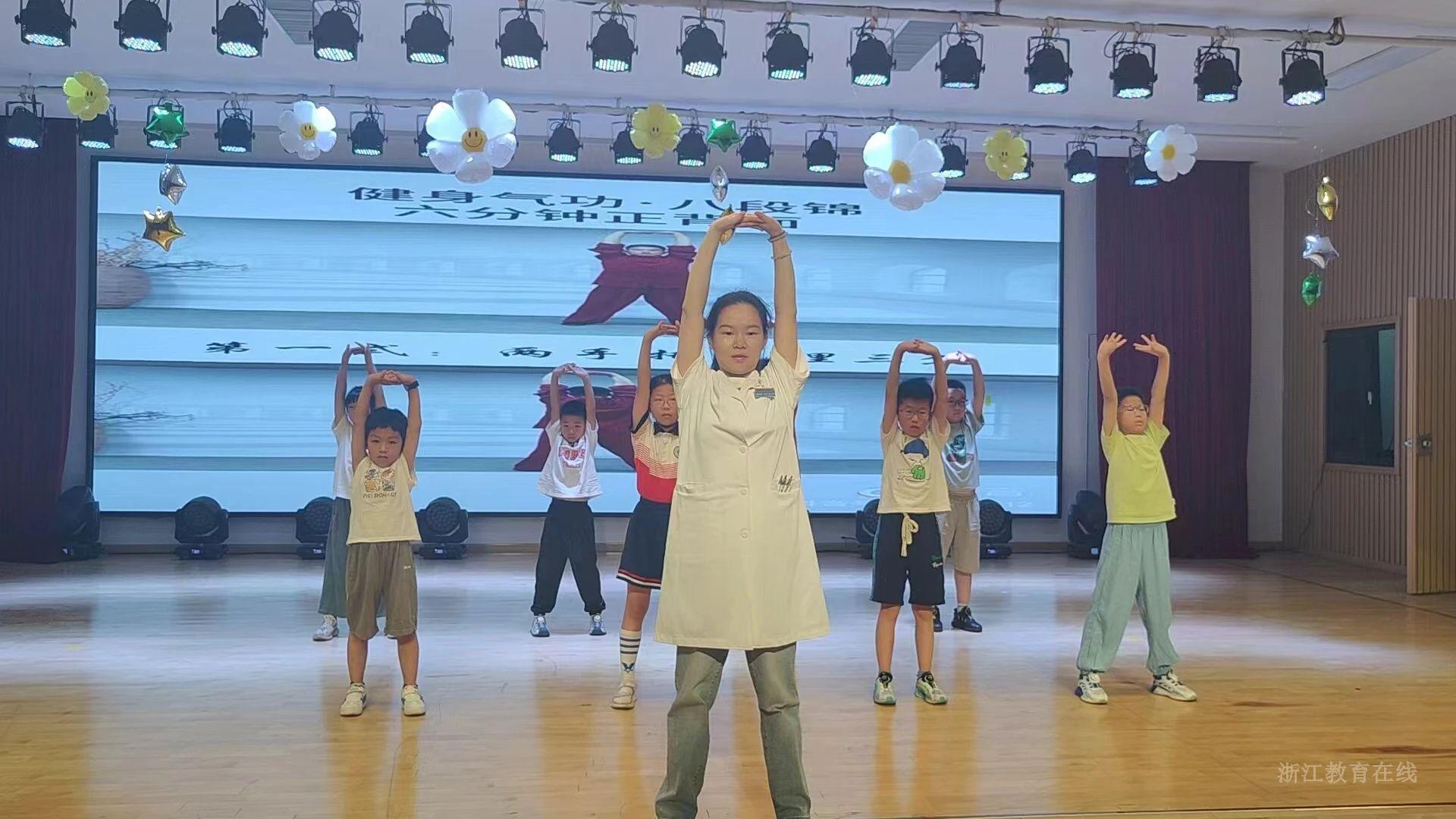 杭十四中附属学校暑托点邀请到了来自康桥街道社区卫生服务中心的医生,为孩子们讲一讲防暑知识,做一做健身气功“八段锦”,还为孩子们送来夏季养生凉茶。