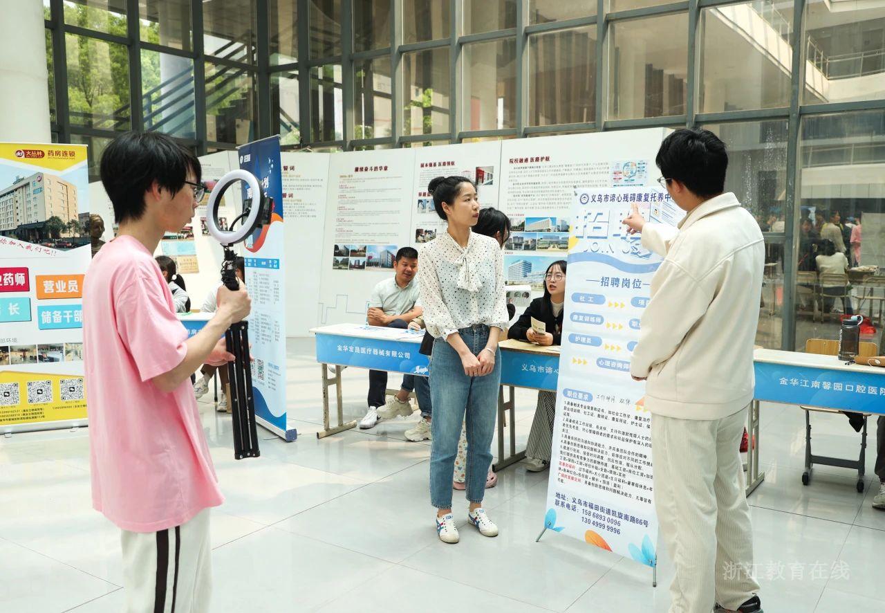 杭州贝康健康科技集团有限公司的校招经理说:“医学生一般以医院为第一就业意向,以往我们民营企业总要等到每年5、6月才会得到学生的关注,现在通过直播就能提前收到不少简历,让我们有机会招聘到优质的学生,缓解了企业招聘难的问题。”