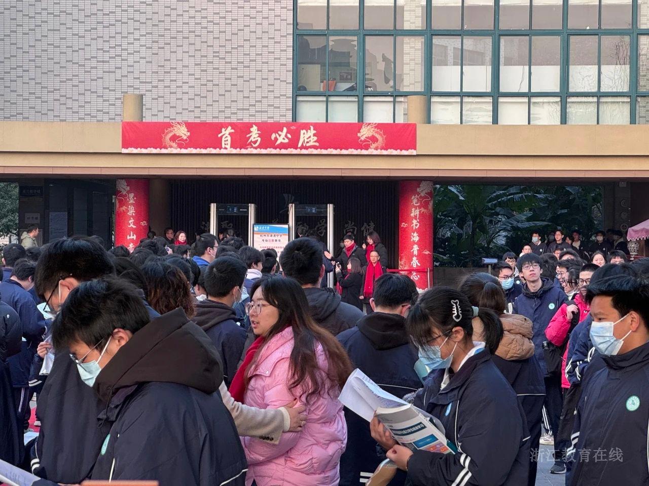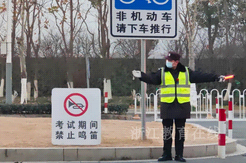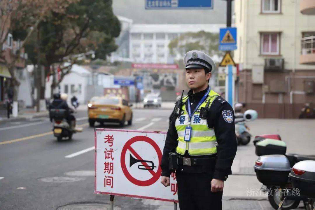 今天,6000余名杭州市临平考生迎来新年的首场大考,警察、保安、学生志愿者等已经早早来到考点内外自己的岗位上,全心全意为每一位考生服务。