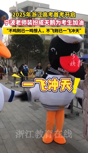 首考开启,浙江省八一学校(宁波外国语学校)老师装扮成天鹅为考生加油,祝愿考生们“不鸣则已一鸣惊人,不飞则已一飞冲天”!