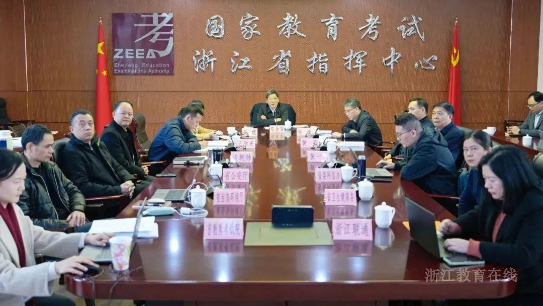 1月6日早上8:00,物理科目选考率先开考。开考前,省委教育工委副书记,省教育厅党组书记、厅长陈春雷来到国家教育考试浙江省指挥中心巡查调度全省组考工作。