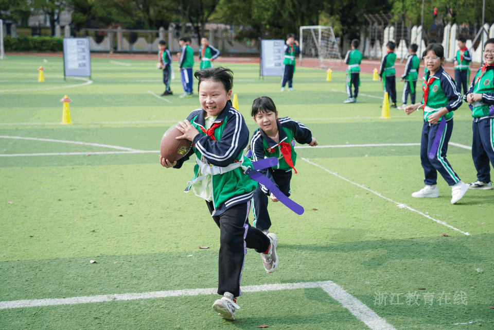 杭州市天长观潮小学深度考量学生不同阶段的身心发展特点与个性化需求,创新开设足球、跑酷等多元体育课程,锻炼学生的身体协调性与平衡能力,并打造长短课结合的自选体育活动课程,精心策划“一月一主题”的体育系列活动,探索”基础体育能力+专项运动技能“范式,塑造差异化体育学习时空。