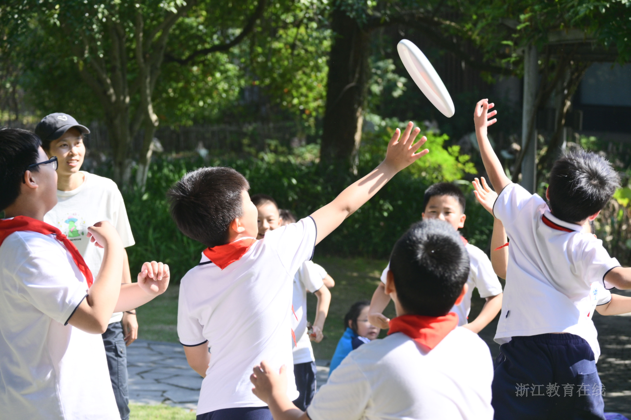 图为:西湖区学校开展飞盘等新兴体育项目
