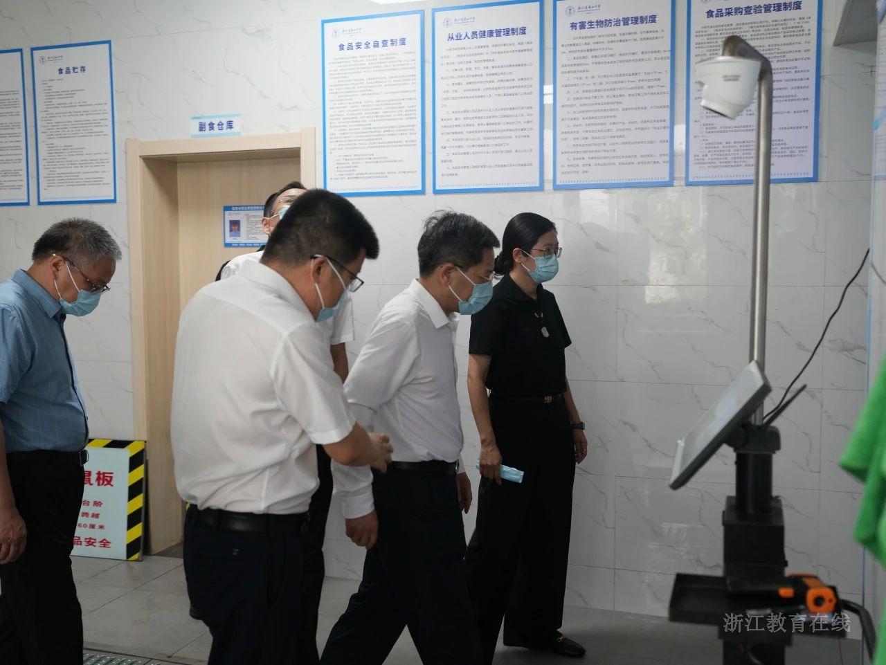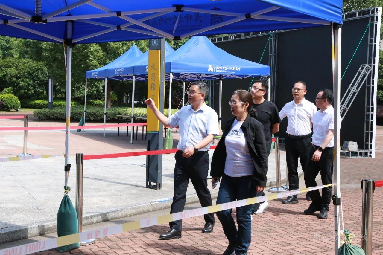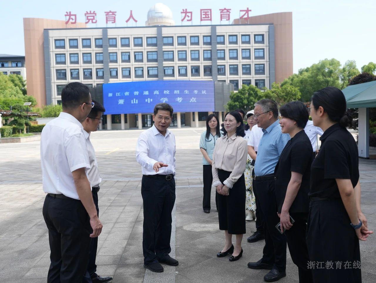 在浙江省萧山中学考点,陈春雷一行重点巡查了考务办公室、视频监控室、听力广播室等,详细了解了试卷保密、考务培训、视频监控、电力保障、听力播放及考场突发事件应急处置等各环节工作,并深入学生食堂检查,重点关注高考期间食堂的运行与保障情况。
