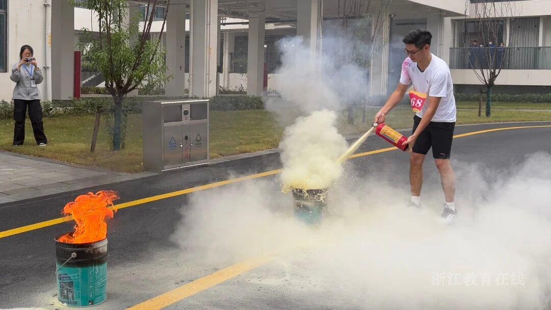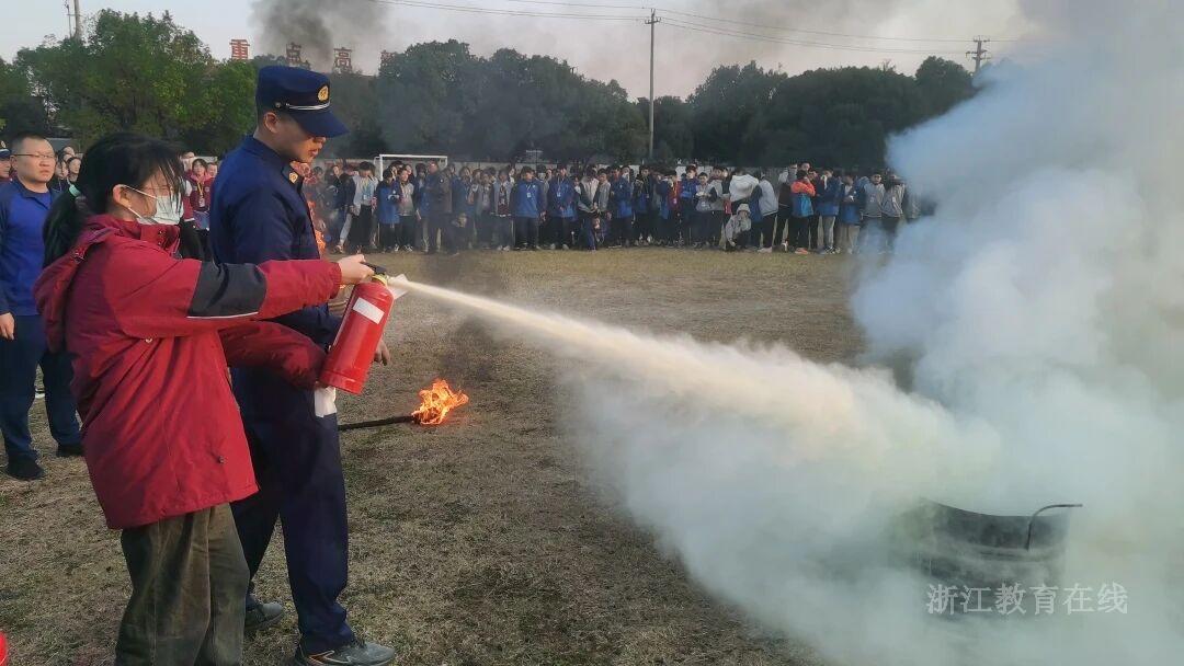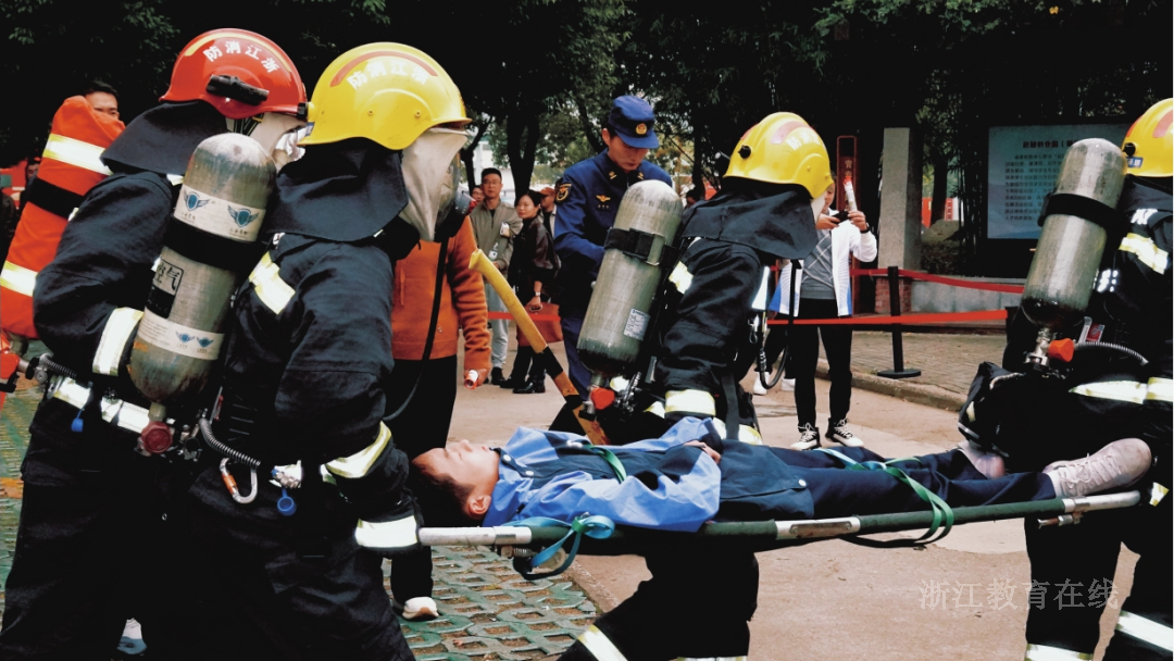诸暨市职业教育中心模拟实战场景,检验消防应急能力。