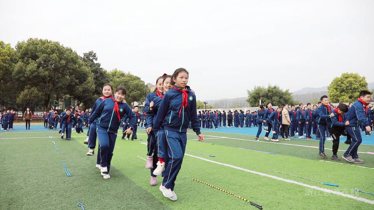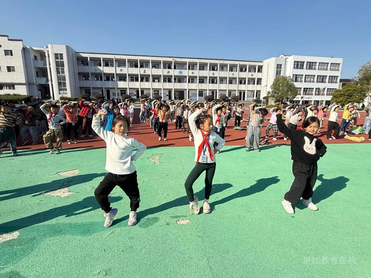 ▲仙居县实验小学优化课间操内容,分年级开展长短绳、立定跳、运球等特色活动,形成“集体操+体能训练+技能提升”的课间模式。