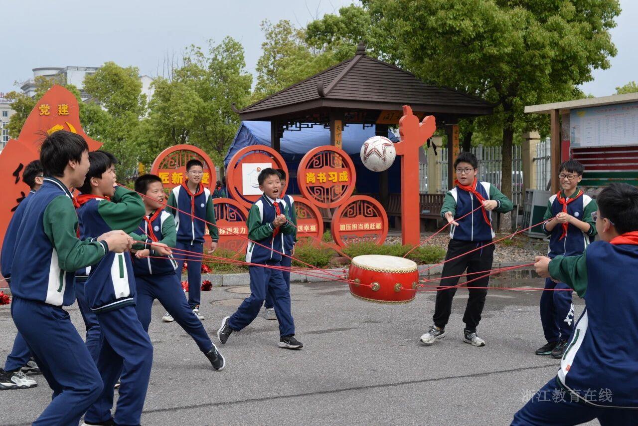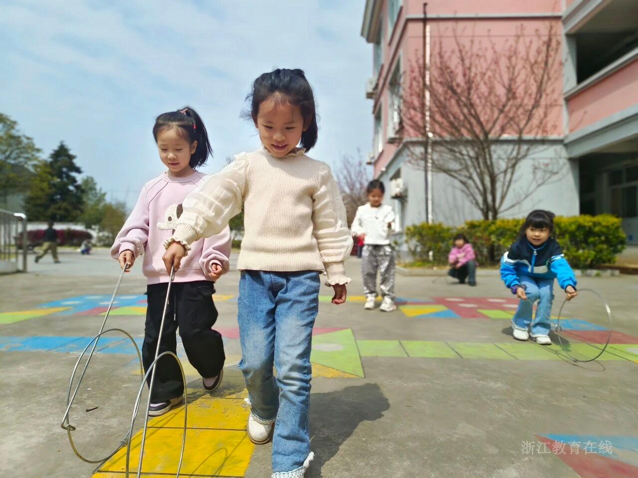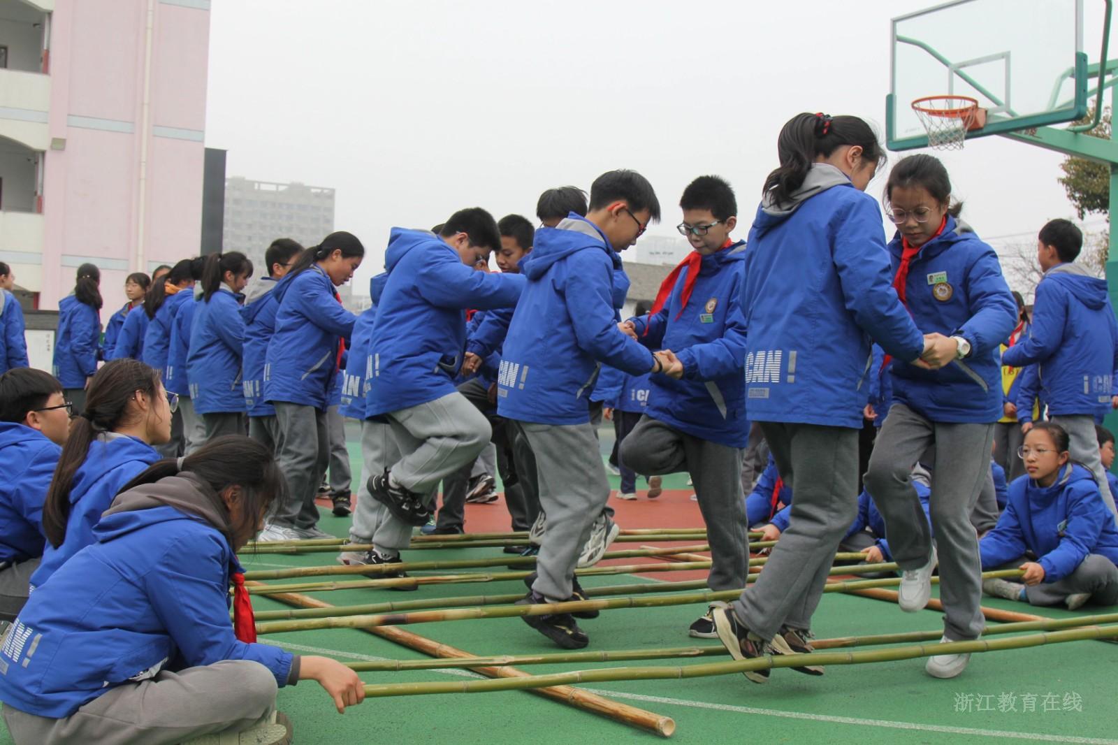 ▲常山县东案乡中心小学将传统体育活动项目和民间游戏相结合,“常规+传统”融合的课堂大大激发了学生们的运动热情。