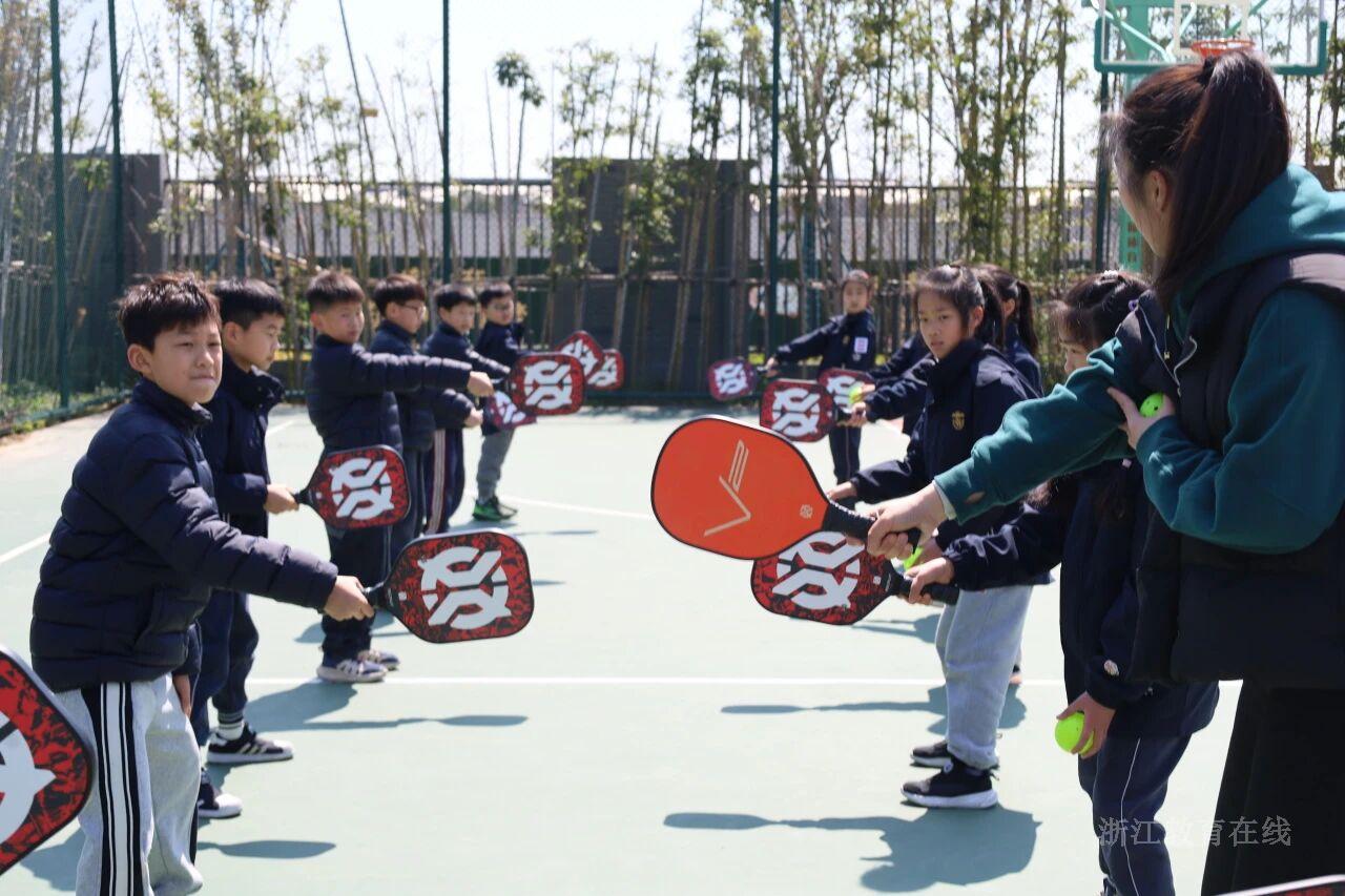 ▲海宁市王国维小学教育集团引入集多运动优势于一体的匹克球项目,开设趣味化体育课程。