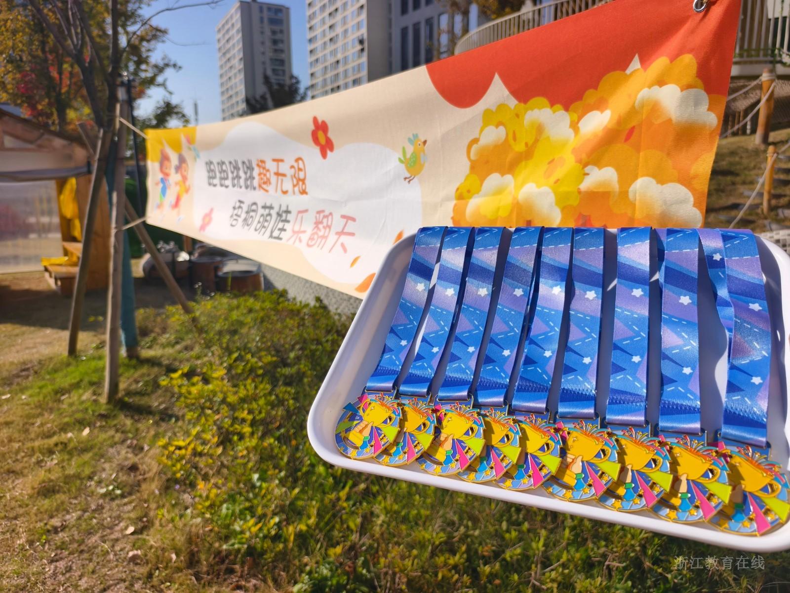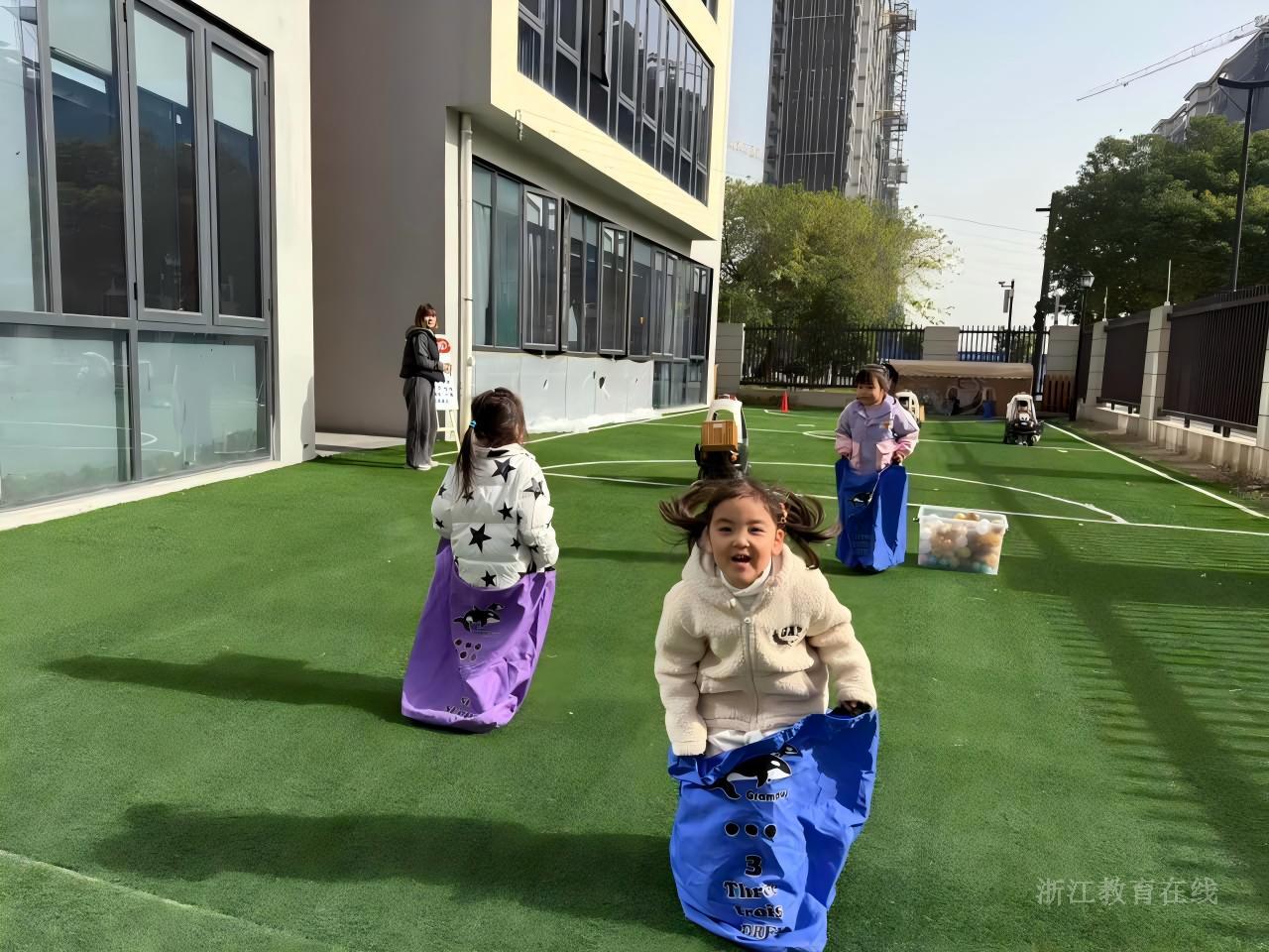 近日,杭州市西湖区梧桐居幼儿园开展以“了不起的小孩——小脚丫大能量”为主题的趣味运动会,采用新颖的“集章打卡”模式,在园区各角落分布了“趣味运果子”“穿越火线”“袋鼠跳”“投球游戏”“小小快递员”“挑水”“摘果子”“钻彩圈”八个运动打卡点。幼儿们手持精心设计的集章卡,化身为小小探险家,自主寻找园内的各个游戏点进行挑战,每成功完成一个游戏,就能在自己的集章卡上收获一枚象征成功与荣誉的小印章。