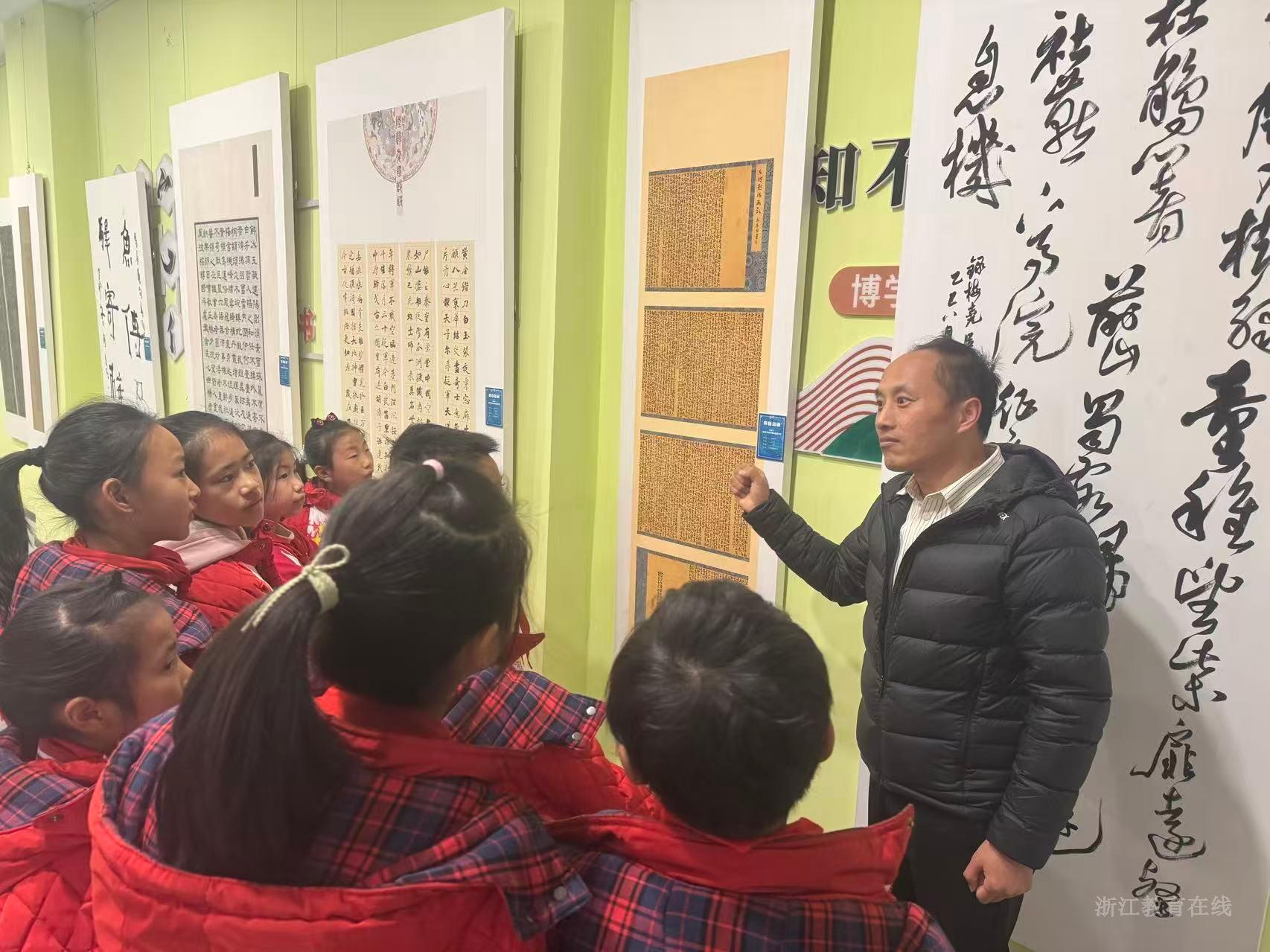 近日,“青春如画”绍兴市上虞区美术教师作品在绍兴上虞康居路小学展出。一个个展厅化为流动的美育课堂,作画教师结合自身专长,为不同年级的学生讲授如何鉴赏画作,引导学生将艺术欣赏转化为学习体验。