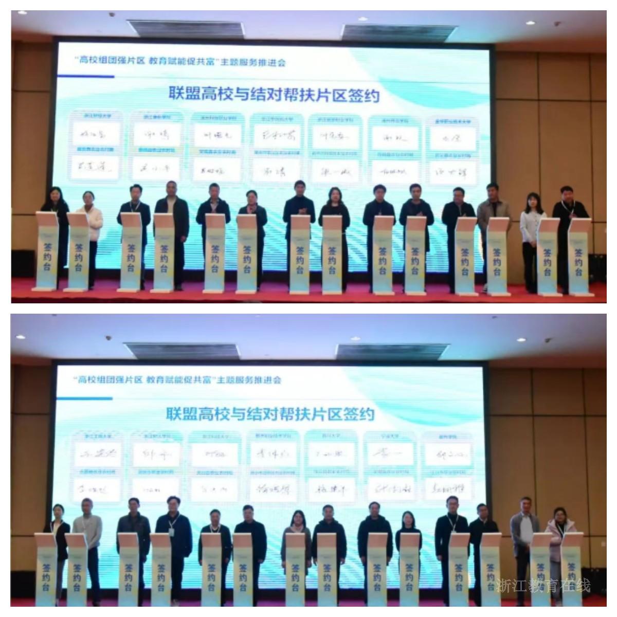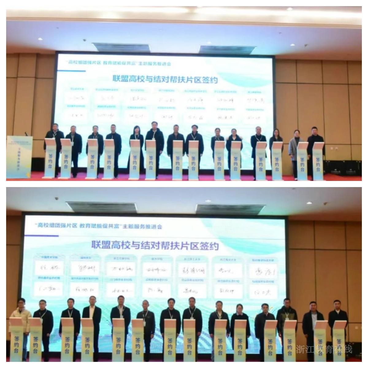 会上发布了2025年高校助力“缩差共富”典型案例,省高校助力乡村振兴联盟组织有关高校与28个山区海岛县农业农村局签订《高校组团赋能片区发展合作框架协议》,明确通过运营服务、建设规划、产业发展、人才培育和文化创新等多途径助力山区海岛县片区组团高质量发展。