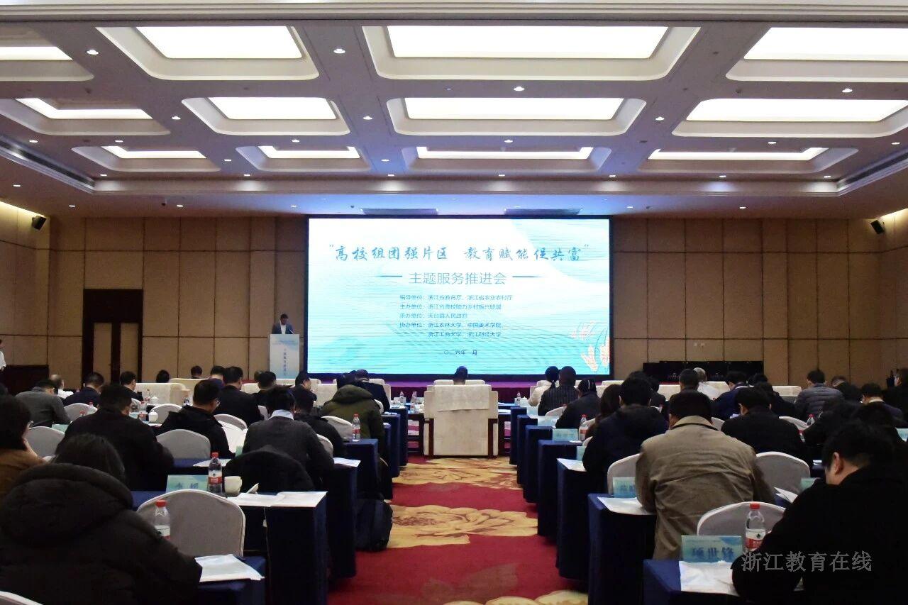 近日,“高校组团强片区 教育赋能促共富”主题服务推进会在天台县召开。省农业农村厅党组成员、副厅长杨大海,省教育厅二级巡视员朱鸿飞出席会议并讲话。