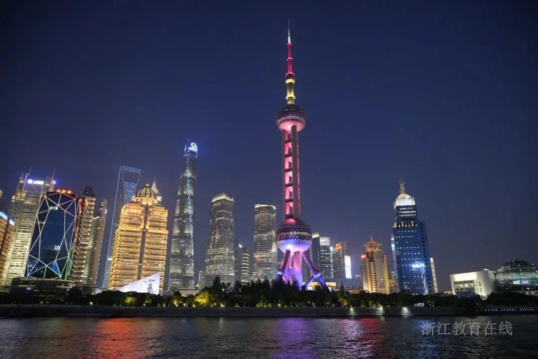 演讲比赛的紧张尚未完全散去,我们已跟随着研学的脚步走进了上海最温柔的夜。当游轮缓缓驶离码头,整座城市仿佛在一瞬间盛开,两岸灯火次第亮起,像无数颗星星坠落人间。东方明珠塔矗立在夜色中,璀璨夺目,宛如一根通向天际的玉簪。上海中心、金茂大厦、环球金融中心并肩而立,玻璃幕墙上流光溢彩,倒映在江面上,形成流动的星河。