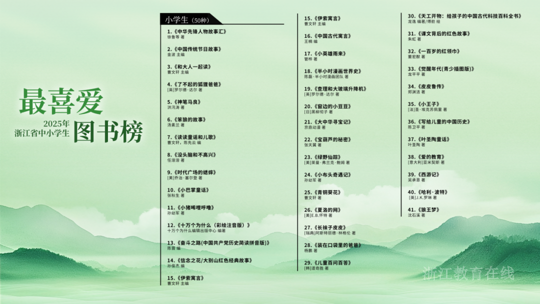 2025年浙江中小学生在读什么?这份图书榜里有你爱读的书吗?