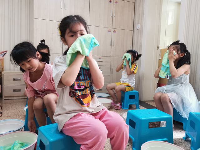 今年茅小的一年级有四个寄宿班,两个走读班,寄宿班的孩子将离开父母独立在学校生活,自己洗脸、刷牙、洗澡、叠被子。对于寄宿的一年级孩子来说,新学期不仅要适应和幼儿园完全不一样的学习方式,学习任务比较繁重,还要在生活上学习自理自立。为了减轻开学初的双重适应要求,学校举办了暑期适应班,目的就是让一年级的孩子暑假先适应起来,熟悉学校环境,了解就餐礼仪,适应就寝习惯,学会各种基本生活能力,并可以针对出现的问题,剩下的暑期时间在家训练,以更快更好地适应新学期的生活。