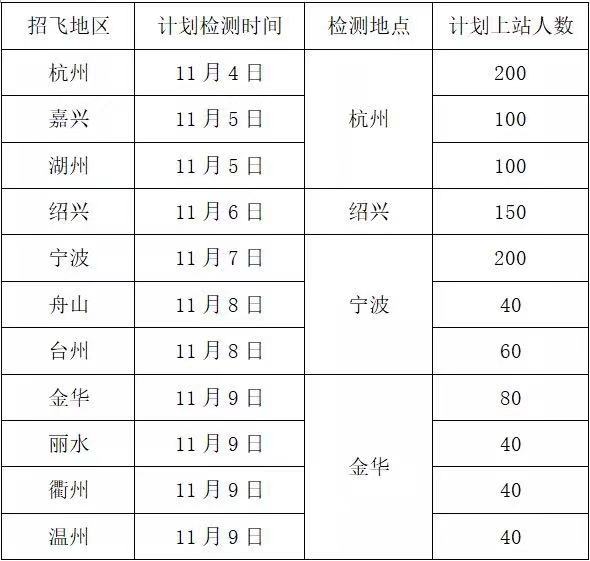 初检以杭州、宁波、绍兴、金华为基点设立检测站,面向全省各地市。日程安排如下: