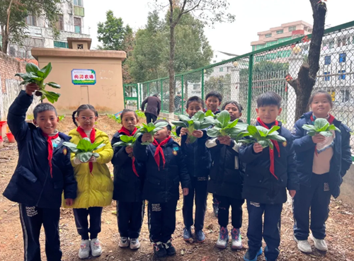 2021年12月苍南县第二实验小学的“向阳农场”首次菜地丰收,孩子们在收菜的实践活动中,提升了热爱自然,热爱劳动,热爱生活的情趣,亲身体会到了每个劳动成果的来之不易,当初举起小锄头、栽下小秧苗的画面还历历在目。