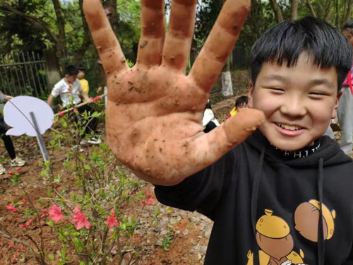 在“一亩田”,师生们去真实的种地,垦荒、拔草、松土、下种、施肥……无需前往郊外田野,学校大队部“一亩田”管理队伍会定期开展各类种植活动,邀请师生共同参与。通过“一亩田”劳动,孩子们不仅能了解到关于种植的知识,还可以锻炼“专注力”、“同理心”和“观察力”等,更重要的是体验了劳动本身的乐趣。