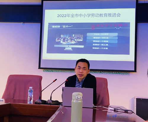 苍南县教师发展中心初中劳动教研员胡万水传达了温州市中小学劳动教育推进会有关精神,解读了中央、省、市关于劳动教育相关文件,并做了《不忘初心助实践 劳动教育促成长》的专题讲座,积极部署现阶段有关劳动教育工作。